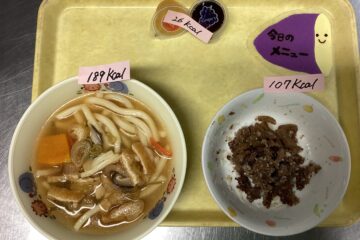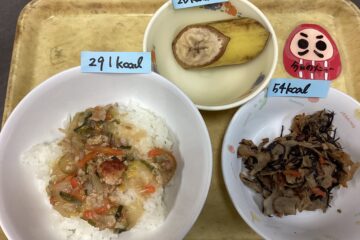 今日の給食は、ごはんとタンドリーチキンとツナとほうれん草のサラダと豆腐スープです。