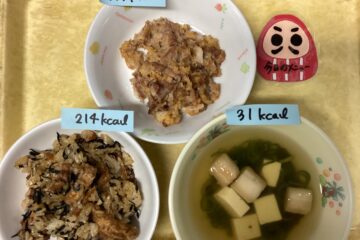 今日のおやつは、マカロニのきな粉和えです。 茹でたマカロニにきな粉と砂糖を混ぜ合わせたものを和えて作っています。 子供たちに人気のメニューです。お家でもぜひ作ってみて下さい。