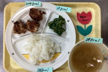今日の給食はごはんと焼き肉と白菜のゆかり和えと豆腐の味噌汁です。