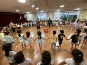 お泊り保育に向けてキャンプファイヤーごっこをしました。