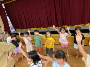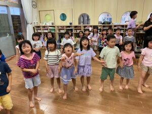 『キャンプだほい』と『アブラハムの子』の曲に合わせて踊り、大盛り上がりな子ども達でした。