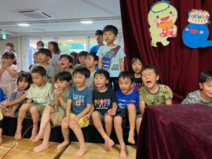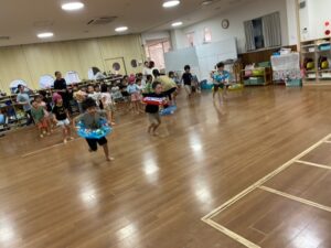 その後は浮き輪を使ったゲームをお泊り保育に行くチーム対抗で行い、とても白熱した戦いになりましたよ。