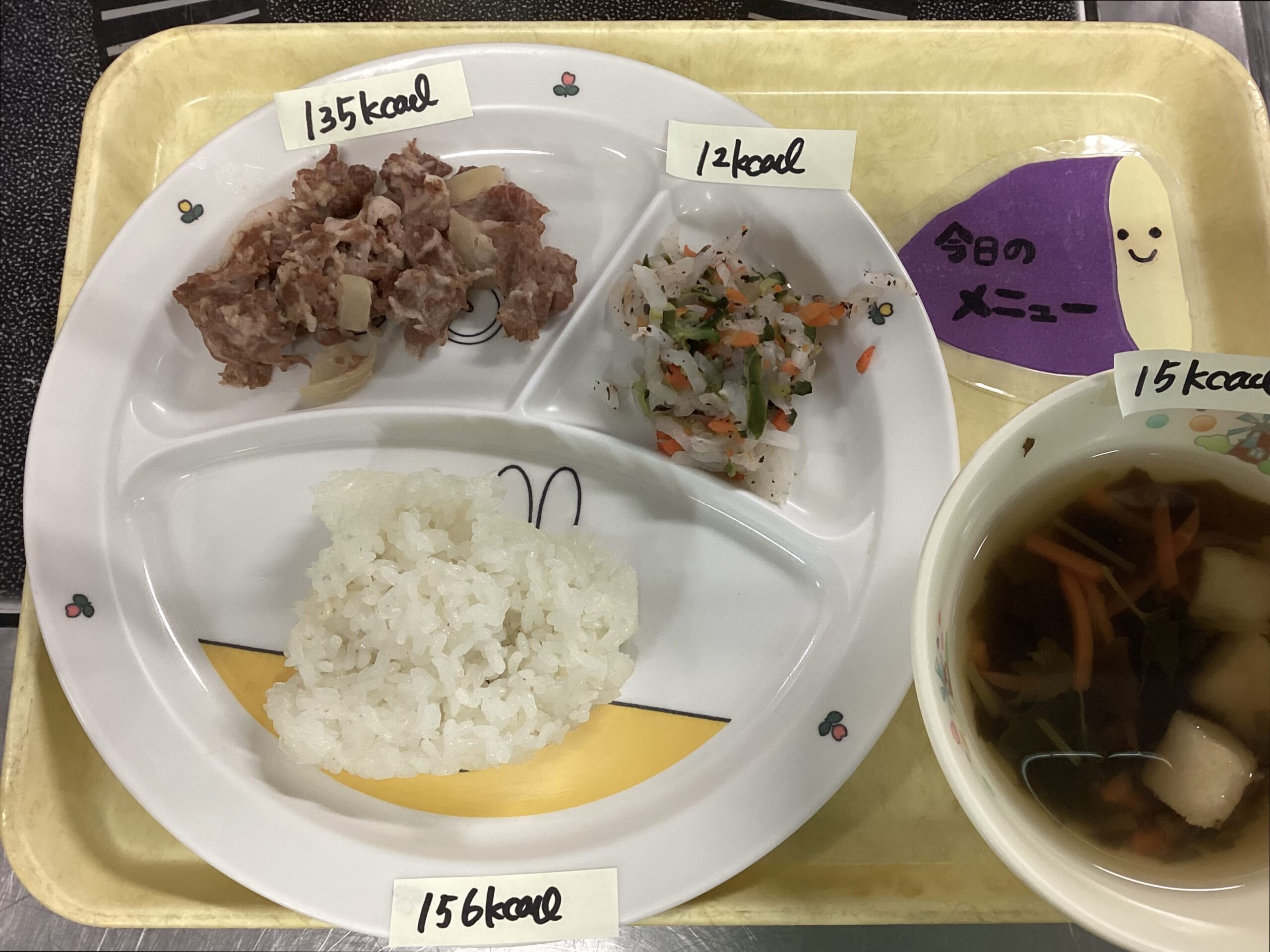 ごはん・豚肉の味噌焼き・大根のゆかり和え・すまし汁