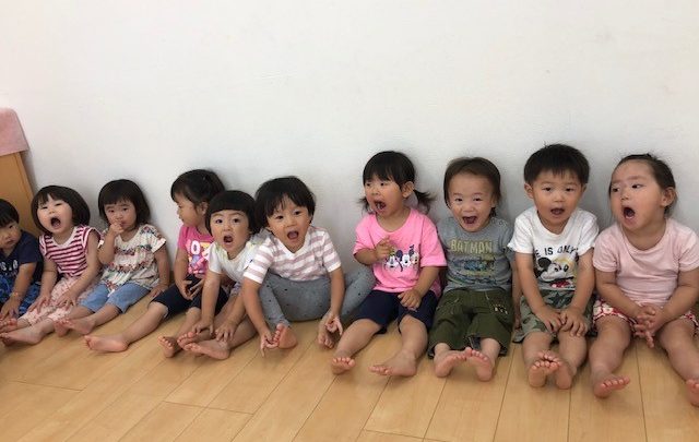 6月22日(火) 《乳児組 きりん組》 今日は、歯科健診がありました。「口の中に悪い虫はいないかな?って見てもらうよ。」 「歯医者さんにどんな風にお口を開けて見せる?」と話すと、とても大きな口を開けて 見せていましたよ。 そして歯科健診中、雰囲気に緊張しながらもみんなしっかりと口を開けて見てもらいましたよ。 その後は、ほっと広場で元気に遊びました。 設定内容→(ぴっころ)テラス遊び(水遊び用玩具)