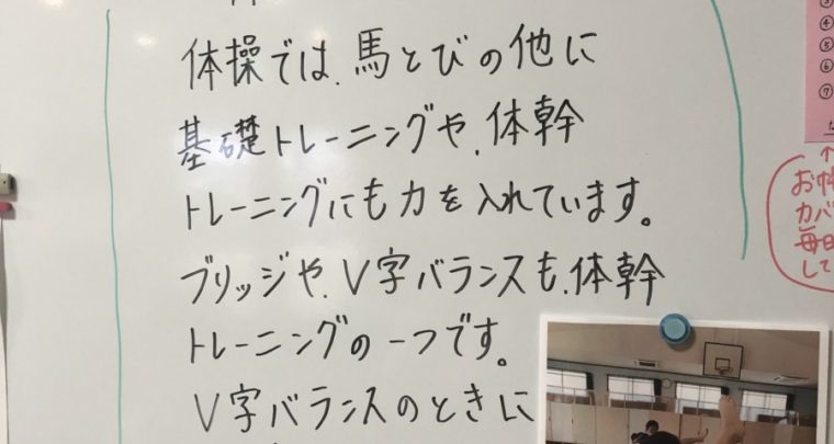 6月22日(火) 《幼児組 かっぱグループ》 体操では今、馬跳びの練習に取り組んでいるかっぱグループです。 連続してテンポよよく跳ぶことを目標に、遠くから馬に手をつく、両足を揃えて跳ぶなどを 気を付けています。 子ども達も意識して練習を頑張っています。他にもブリッジやV字バランスの練習もしています。 中にはここまで足を体に近づけられるお友達もいますよ! 設定内容→(かっぱ)体操