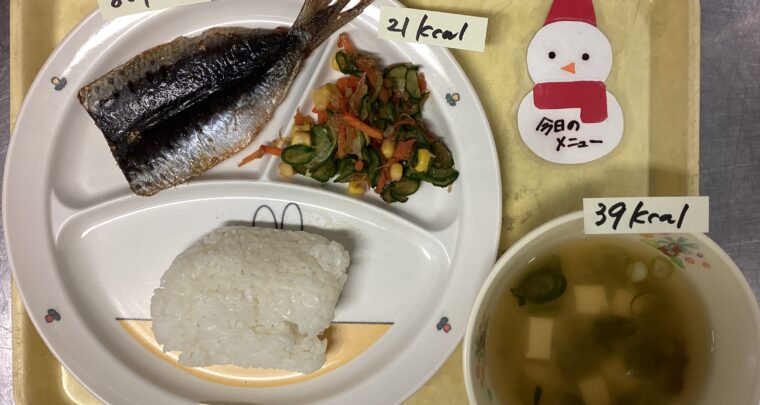 ごはん・鰯の蒲焼き(0、1歳:鮭の塩焼き)・きゅうりのおかか和え・味噌汁