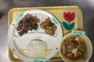 七草粥・鮭の塩焼き・根菜の味噌汁 今日の給食は、七草粥・鮭の塩焼き・根菜の味噌汁です。 今日の七草粥は、春の野菜で、ほとけのざ・なずな・はこべら・ごぎょう・せり・すずしろ・すずなが入っていましたよ! これを食べることで、一年の無病息災を祈るようになったとされているそうです。