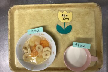 おにぎり 今日のおやつは、おにぎりです。 かっぱさんがおやつの前に、おにぎりの具が何かを聞きに来てくれました。 今日は塩昆布のおにぎりでした。 来年はどんなおやつが出てくるでしょうか。 美味しい給食を作るので、たくさん食べて下さいね。
