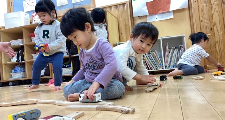 12月26日(木)1歳児:いるか組・めだか組(ほーぷるのぼり・のぼり小規模保育園) 今日は、積み木と電車で遊びました。 積み木では、高く積んだり 長く並べたりしていましたよ。 また、窓のふちで「ブーン」と車を走らせる姿も見られましたよ。 電車では、線路をつなげて走らせたり、 連結させたりして楽しんでいましたよ。 【設定内容】 【ほ