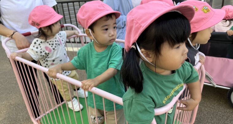 10月11日(金)1歳児:りんご組(ほのぼの) 今日は大型バギーに乗って、園周辺の散歩に出掛けました。 電車や車をたくさん見ましたよ。 その後は、ほーぷるに行くグループと奈良町南公園で遊ぶグループに分かれました。 公園グループはすべり台をすべったり、砂遊びをしたりして楽しく過ごしました。 ほーぷるグループは、お兄ちゃんお姉ちゃんと一緒にボールプールで遊びましたよ! 【設定内容】
