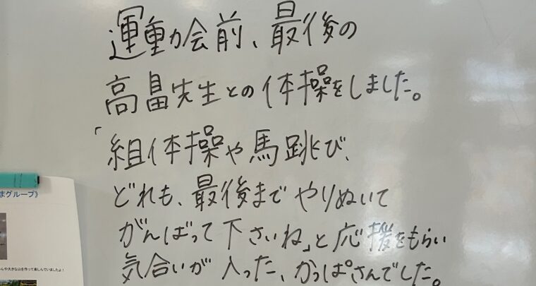 9月26日(木) 《幼児組 かえるグループ》 今日はリズム遊びの練習をしました。 練習の前に特別なあるものを子どもたちに用意しました。 それを見ると子どもたちは、歓声を上げ喜んでいましたよ。その特別なものをつけて練習をすると… パワーが出て大きな声で歌ったり、隊形移動に取り組むことができます。 “あるもの”とは何でしょ~か⁉当日のお楽しみです❣ 設定内容→(かっぱ)体操 (かえる)リズム遊び (おたま)ダンス