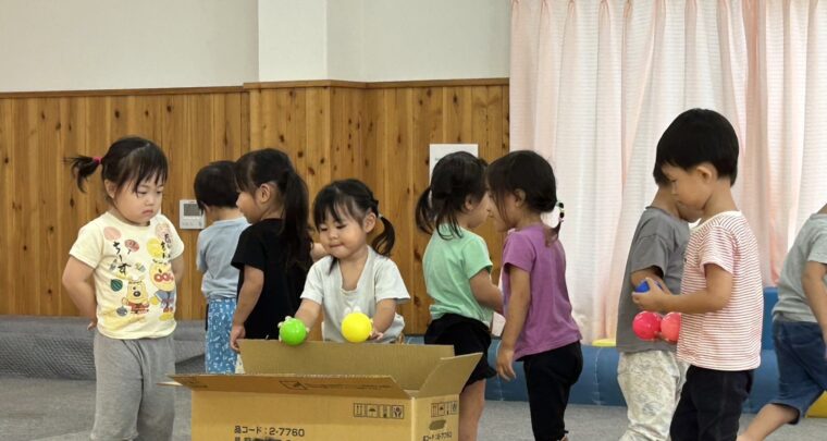 9月25日(水)2歳児:ぶどう組【ほのぼの】 今日は、ほーぷるとほのぼのの2グループに分かれて過ごしました。 ほのぼのでは、ボール当てゲームやすべり台 ほーぷるでは、トンネル遊びをしました。 だんだんと1人遊びからお友達と関わって 遊ぶことがぶどうさんは増えてきました! 給食では『バキュン持ち』や最後のピカピカも子どもたち自身で出来るように頑張っていますよ!