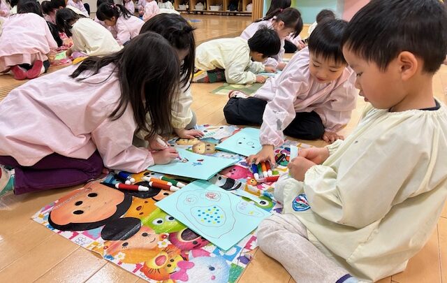 3月8日(金)3歳・4歳児(ほーぷるのぼり) 今日は、いつもお世話になっている〇〇〇さんへ贈るひみつのプレゼントの準備をしました。 「やさしくしてもらったな...」「たのしかったな...」と思い出を振り返りながら、 気持ちを込めてセリフを考えたり、プレゼントを作ったり最近練習している歌もみんなで歌うことができました! 「これはひみつなの」とお別れ会の日を待ち遠しそうにする子どもたちでした! 【設定内容】