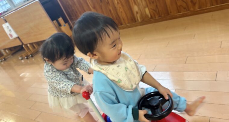 3月12日(火)0歳児:ぺんぎん組・めだか組(ほーぷるのぼり・のぼり小規模保育園) 今日は、手押し車で遊びました。 手押し車が出てくると「早く遊びたい!」と立ち上がるぺんぎん組のお友達。 お友達の乗っている手押し車を押したり、 「〇〇ちゃん待ってー!」と追いかけたりして たくさん体を動かして遊んでいましたよ。 【設定内容】
