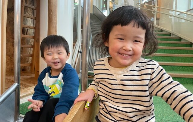 3月11日(月) 《乳児組 こぐま組》 今日はグループシャッフルをしました。三輪車に乗って友達とのぼりドーム周辺をぐるぐると散策したり、 一緒に滑り台を滑って遊んだりとたくさんの友達と関わっていました。 遊んでいる途中に空から飛行機が飛んでいるのが見えて「あーひこうきだ」と叫びながら空を眺めていましたよ。 シャッフルをしたグループで給食を食べた後はままごとコーナーで友達と一緒に料理を作っていました。 「おいしそう