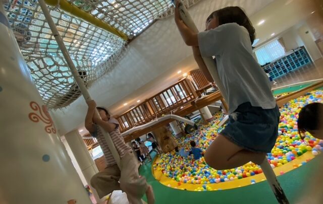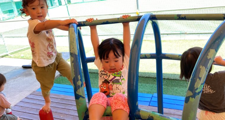 7月5日(水) 《幼児組 かっぱ2組》 のばり棒の体力測定をしました。ボールプールの、のぼり棒を「上まで登るぞ」と 意気込む子ども達。汗や湿気で滑ってしまうお友達もいましたが、みんな一生懸命登っていましたよ。 上まで登れるお友達がどんどん増えてきています。 その後はモンキーシャトーでたくさん遊んだ子ども達でした。 設定内容→(かっぱ)1組チキチキ広場 2組体力測定 3組茶道 (かえる)1,3組セ