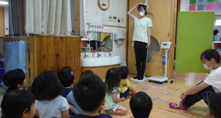 6月15日(水)2歳児:あしか組・めだか組(ほーぷるのぼり・のぼり小規模保育園) 今日は、身体測定をしました。 始める前に身体測定の仕方を確認しました。 「お名前を呼ばれたら、大きな声で返事してね」「測るときには ”気をつけ” するよ」等々... 話を聞いた後は、測定スタート! お約束をしっかり守り、測定することができましたよ。 終わった後に、マリンシャトーでたくさん体を動かしましたよ。 【設定内容】