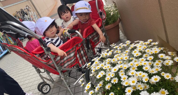 5月9日(金) 《乳児組 こりす組》 今日は昼から雨予想の為、朝から曇り空。 しかし、こんな日こそごろごろ広場日和という事で、広場へ出発‼バギーでの散歩にもすっかり慣れてきて 顔をにっこり覗かせたり、周りの景色を楽しむこりすちゃん。 到着したごろごろ広場でもボールを転がしたり、シャボン玉を追いかけたり、活動が少しずつ広がっていますよ。 設定内容→(ひよこ)こっこグループ…戸外遊び(チキチキ広場)ぴよぴよグループ…戸外遊び(のぼり