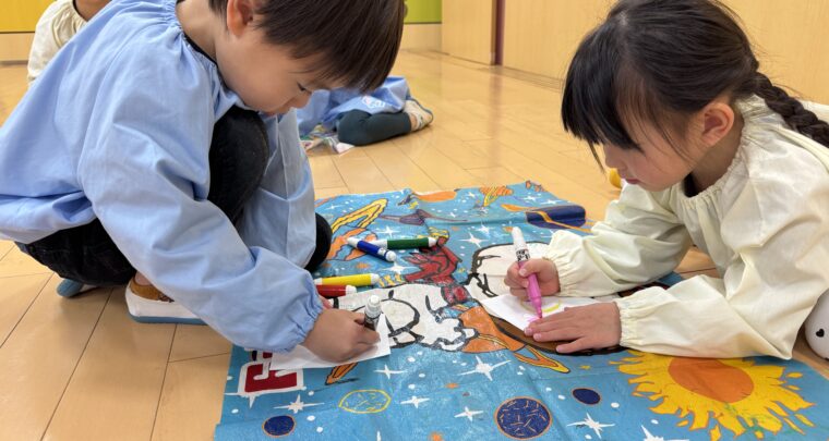3月5日(水) 《幼児組 かえる2組》 今日は、英会話教室がありました。 数字や曜日の英語を習いました。新しく “hamburger”“pizza”など、食べ物の単語に 天気“wind”“sunny”なども習いました。歌を歌ったりと英会話教室を楽しんでいましたよ。 設定内容→(かっぱ)卒園式練習 (かえる)1組ブロック・モンキーシャトー 2組英会話教室 3組絵画 (おたま)体操 (たまご)英語遊び