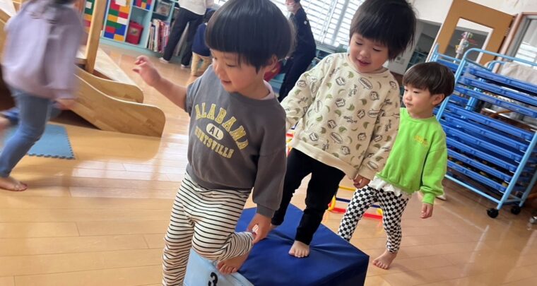 3月26日(水)2歳児:あしか組・めだか組(ほーぷるのぼり・のぼり小規模保育園) ボールプールとアスレチック遊びをしました。 両足とびが上手になってきて、連続で飛ぼうと挑戦したり、「落ちる~!」「気をつけて!」など、ともだち同士で声をかけ合いながらアスレチック遊びを楽しんだ子どもたちでしたよ。 【設定内容】