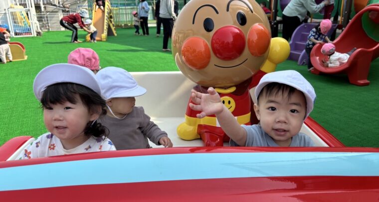 3月26日(水)0歳児:ぺんぎん組・めだか組(ほのぼの) ポカポカ陽気の中、バギーに乗って“のぼりドーム”や“ほっと広場”へ行きました。 アンパンマンの車に乗って「バイバ~イ」と手を振ったり、 鉄棒やアスレチックで体をたくさん動かしたりして遊びましたよ。 今年度のブログは、今日で最後になります。 1年でたくさんの成長を見せてくれた子どもたち。1歳