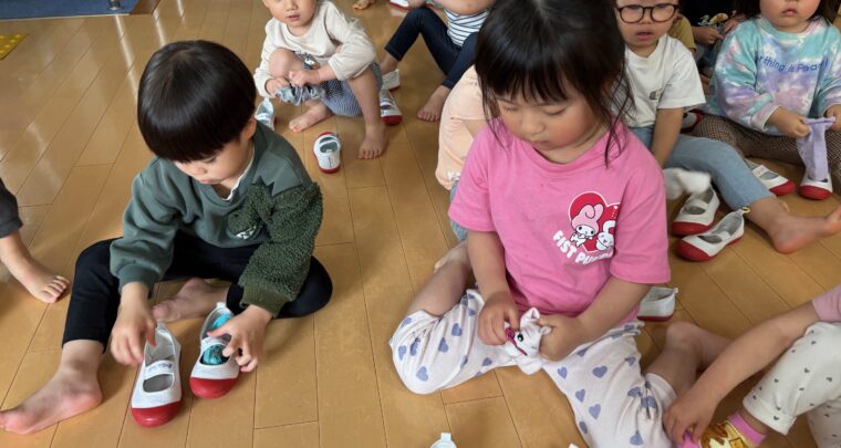 4月11日(金)幼児:おたま黄グループ(ほーぷるのぼり) 給食を食べた後、お昼寝をする前にマリンシャトーで遊びました。 まずは上靴と靴下をぬぎます。この時、靴下が無くならないように、1つにまとめて上靴にいれおきます。 そして大きな滑り台を順番にすべって行きました。「キャー!」と声を出したり、友達と手をつないで滑ったりと 楽しんでいた子どもたちでした。 【設定内容】